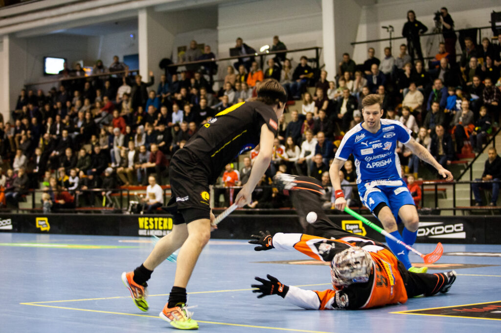 Westend Indiansin kahdeksan takaiskumaalin kirous Espoon jäähalliderbyissä istuu tiukassa. Oilers voitti perjantai-iltana isännöimänsä Salibandyliigan ottelun Metro Areenalla 8–5 eli täsmälleen samoilla lukemilla kuin edellisen koitoksen samassa paikassa reilu vuosi sitten. Tämänkertainen kamppailu olisi voinut kääntyä kummalle vain, mutta Oilersin maalivahti Joonas Kaltiainen pelasi hienosti ja maajoukkuepelaajat Justus Kainulainen ja Antti Suomela näyttivät hyökkäyspään osaamistaan.